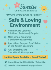 Sweetie Child Care Services is a safe a supportive space for all children and families. Our curriculum is designed to include all abilities.